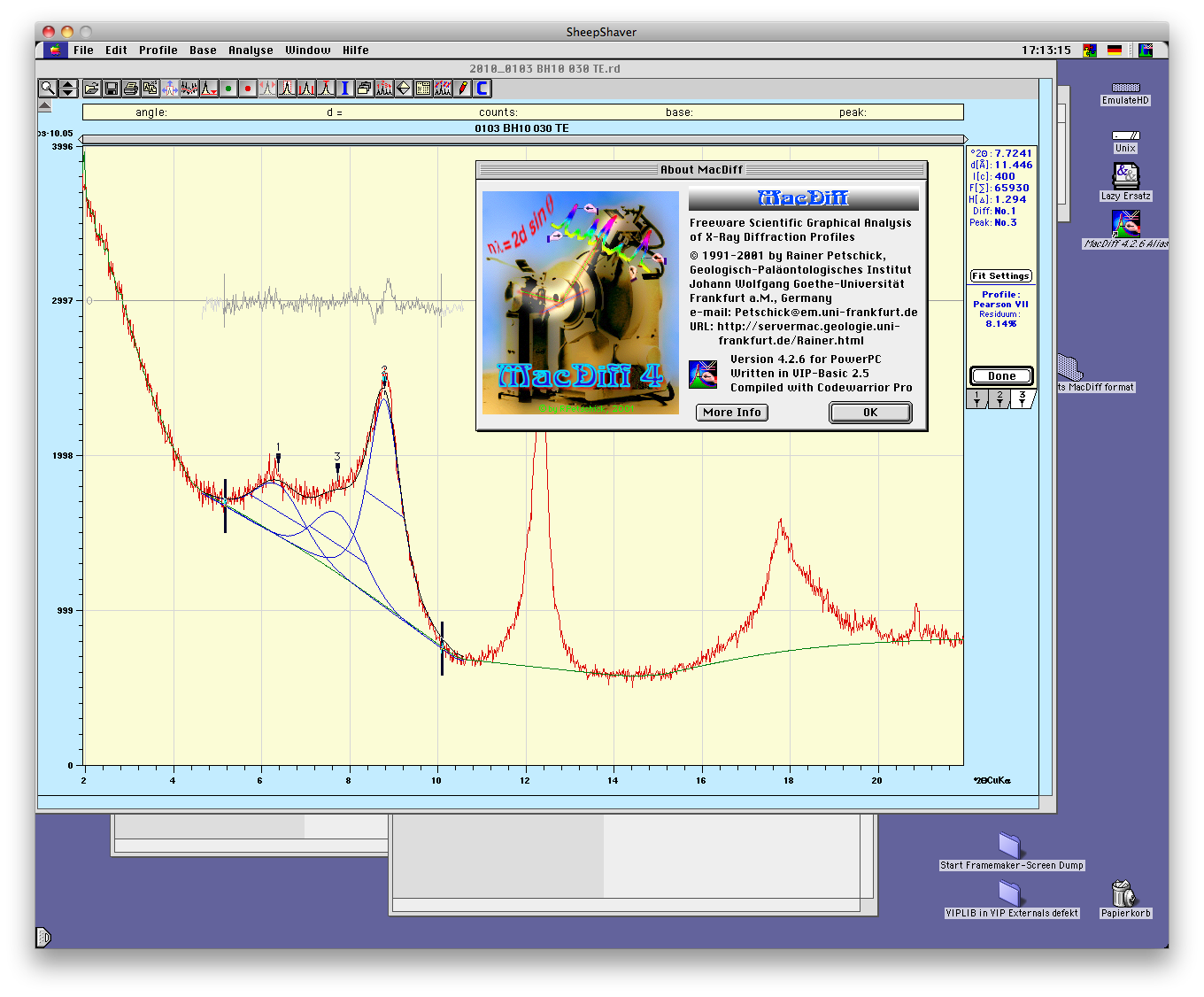 The user-friendly X-ray powder diffractometry analysis tool for Classic Macintosh computers.